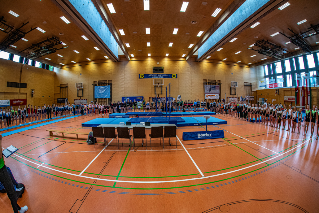 470 Mädchen traten an fünf Geräten an und turnten Boden, Schwebebalken, Reck bzw. Stufenbarren, Sprung und Trampolin. Die jüngeren Burschen absolvierten einen 5-Kampf mit Boden, Barren, Reck, Sprung und Trampolin und beim 7-Kampf für die Älteren waren zusätzlich Seitpferd und Ringe zu turnen.